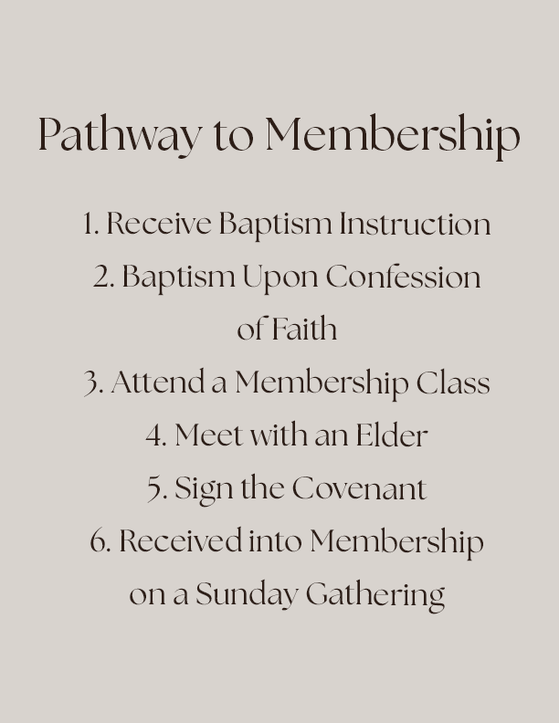 Upon meeting with an Elder and signing this Covenant, a person is welcomed into Membership on a Sunday Morning Gathering!